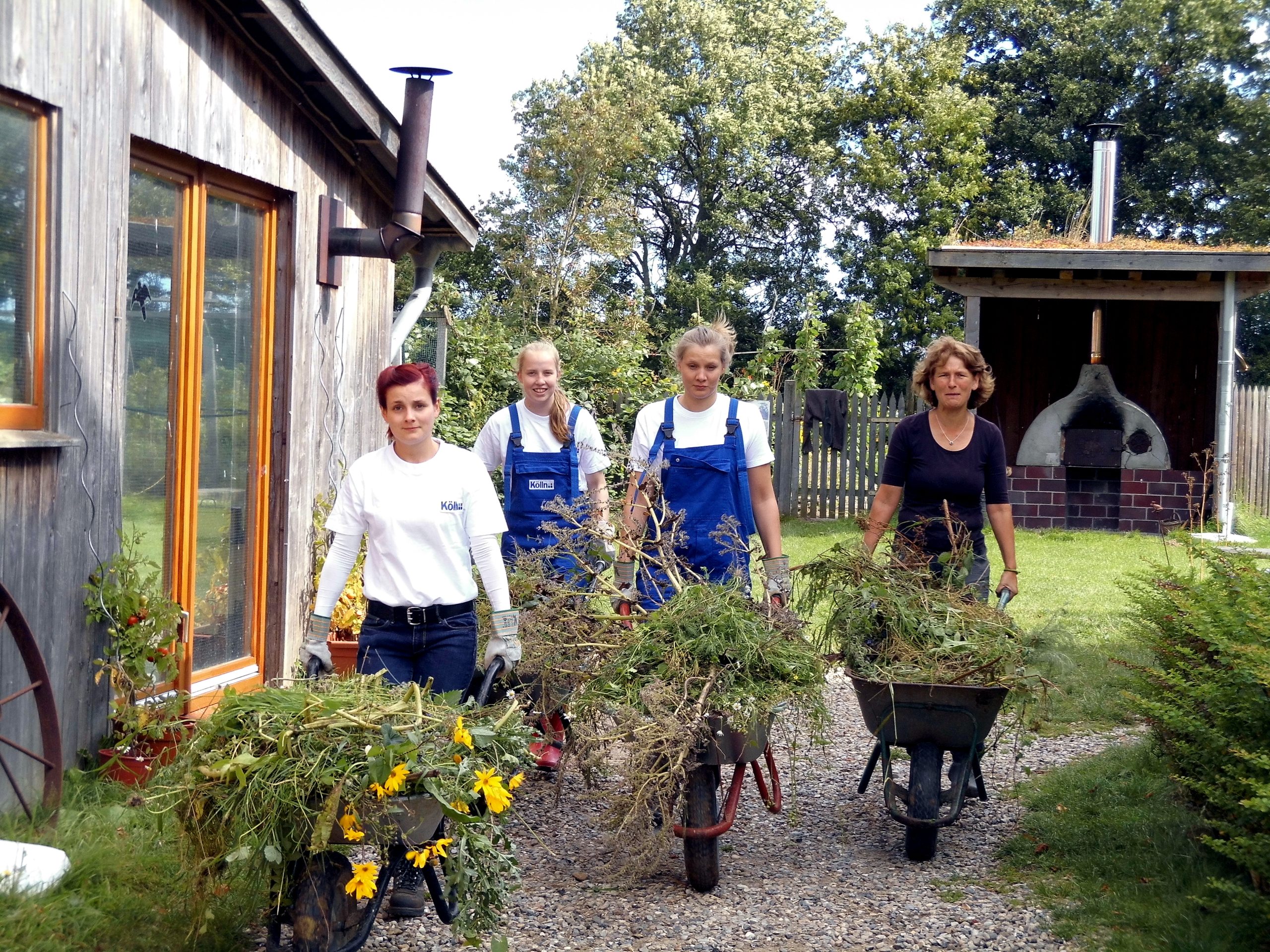 Wir sind zertifiziert als Bildungsort für Nachhaltigkeit, Naturerlebnisraum Knick & Biolandwirtschaft und als Permakultur-Akademie. Diese Konzepte prägen unseren Hof und unser Zusammenleben. Nachdem die neuen FÖJ die Theorie kennengelernt haben, können sie eigene Projekte entwickeln, Gäste anleiten und bei der Pflege und Verarbeitung der Früchte helfen. In der gemeinsamen Frühstücksrunde werden Aufgaben und Probleme besprochen und wo möglich geklärt (Partizipation und Transparenz).